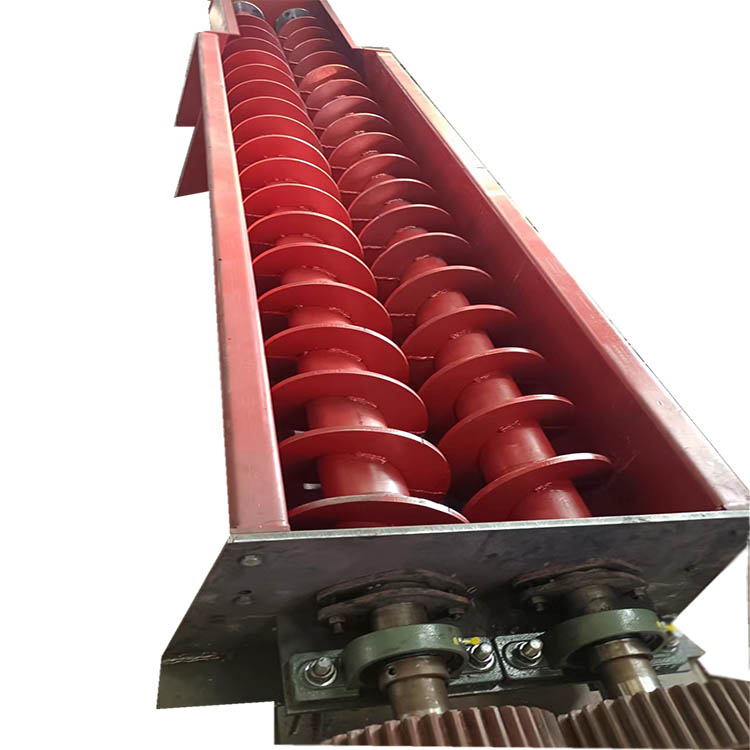 雙軸螺旋輸送機的生產(chǎn)優(yōu)勢是什么?雙軸螺旋輸送機的工作原理是兩根無縫鋼管配一根實心螺桿,一根為左旋螺桿,另一根為右手螺桿。工作時,兩個螺釘在軸伸位置通過一對齒輪旋轉(zhuǎn)。由于螺桿體的旋轉(zhuǎn),物料軸向移動,達到輸送的目的。螺桿軸與懸掛軸承、頭尾軸采用預埋舌式連接,安裝拆卸無需軸向移動,維修方便。芯棒長,懸掛少,故障點少。采用變徑結(jié)構,增加懸掛軸承容積,避免與材料接觸。懸掛軸承的使用壽命可達兩年以上。